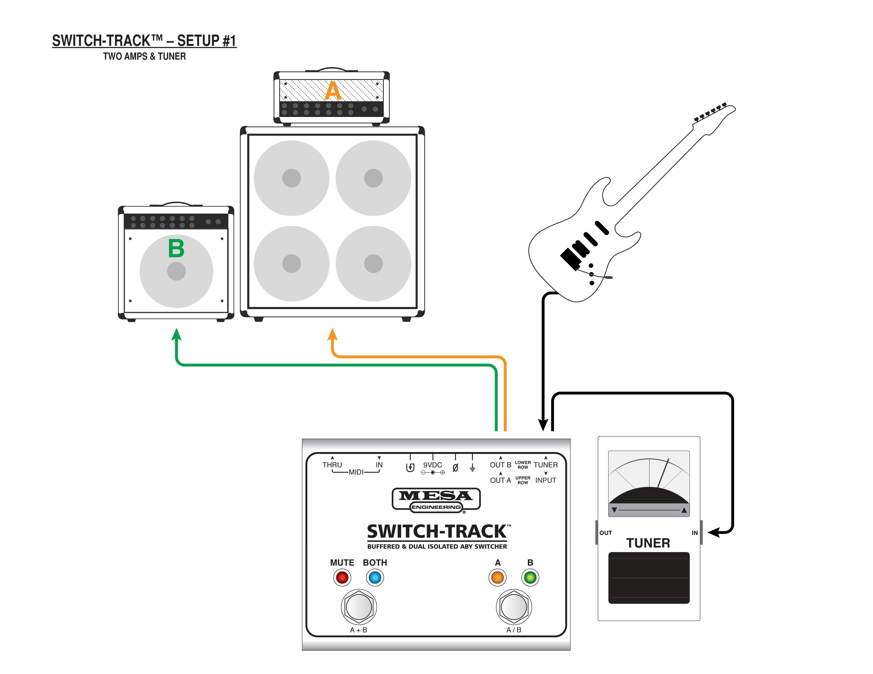 The Switch-Track™ enables an either-or-both, ABY scenario for your two favorite amplifiers. Select between two different amplifiers, two identical amps for more Channels and sonic options or combine them for a bigger, fuller sound, or a specific blended character.